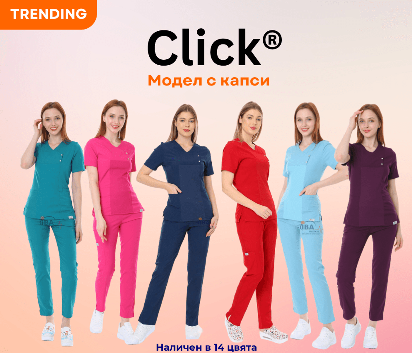 Медицински екип Click с капси е изработен от екстра еластична материя, за да ви предложи: