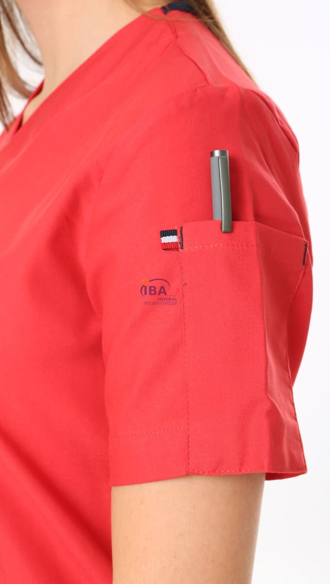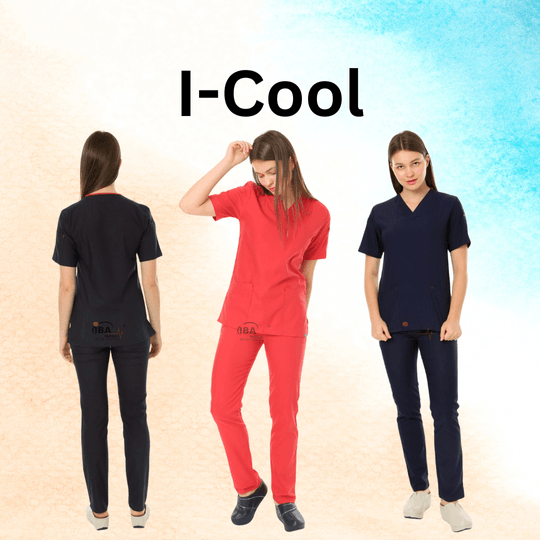Медицинските комплекти I-COOL са изработени от висококачествена и лека материя, която осигурява комфорт и удобство. Те са подходящи както за жени, така и за мъже, благодарение на универсалния си дизайн. Комплектът включва горна част с V-образно деколте и контрастен кант, както и долна част с класическа кройка на панталон с регулируем ластик и връзки.