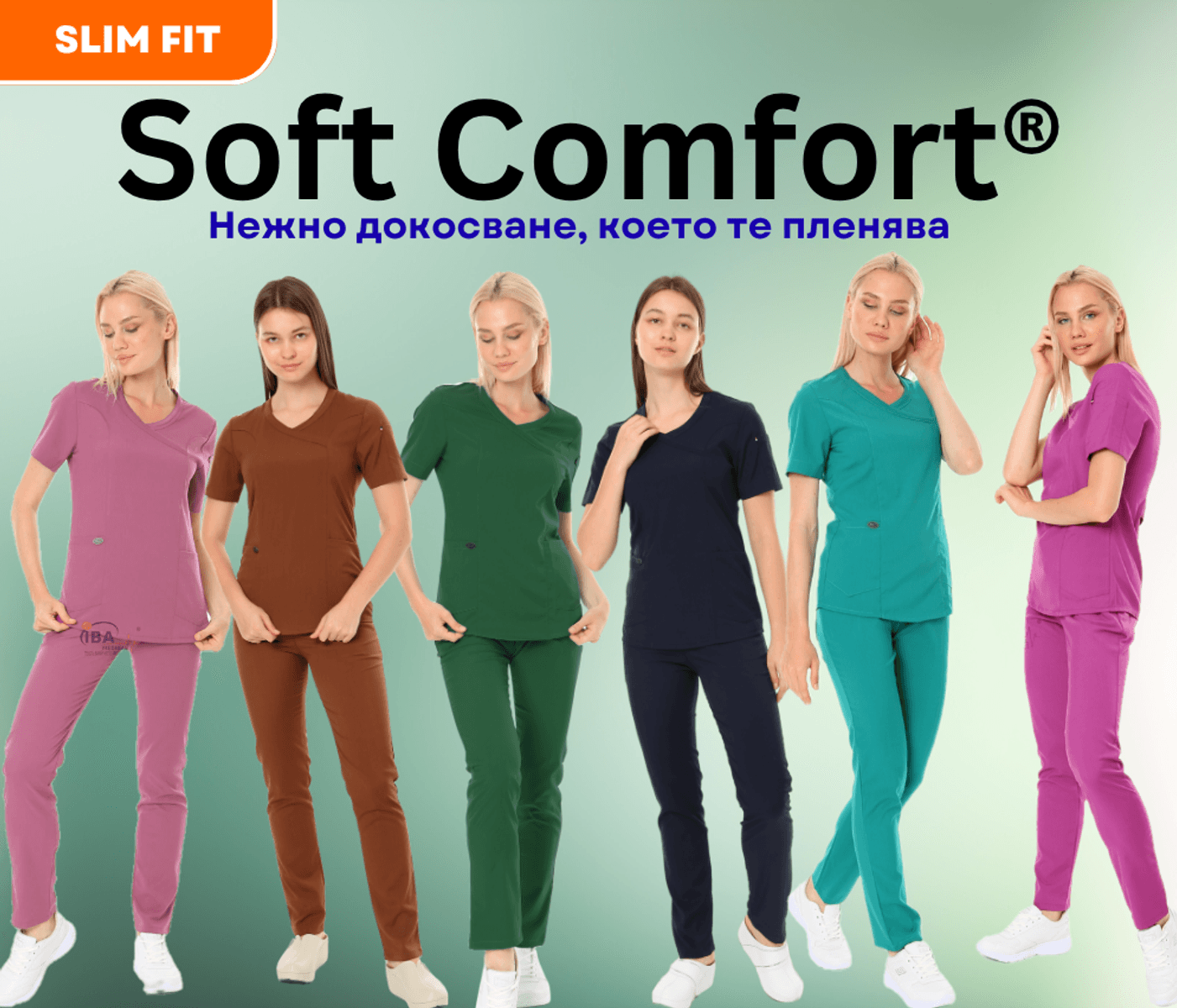 Медицински екип SoftComfort (Slim fit) е изработен от висококачествени платове, подбрани с внимание, за да ви осигурят: