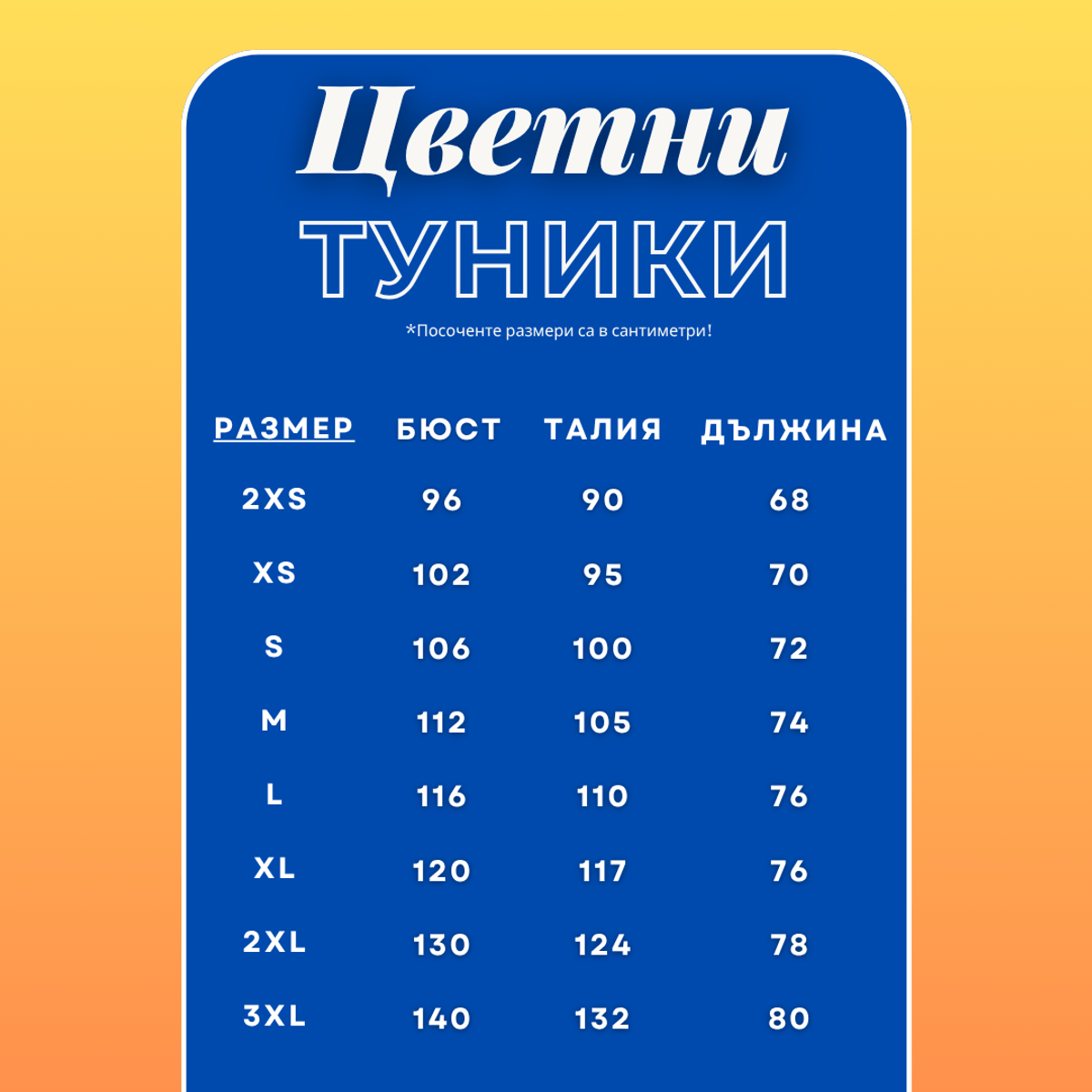 Нашите шарени туники са създадени, за да осигурят комфорт през всички сезони. Те се предлагат в 8 различни размера и 5 уникални десена.